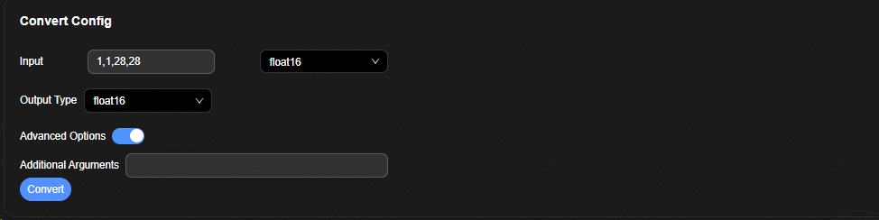 扩展参数输入框。模型转换界面不支持配置,但是ATC工具支持的参数均可通过此选项进行扩展。在该输入框中用户根据实际情况输入ATC工具可用的参数。多个参数使用空格分隔。详细参数请参见《ATC离线模型编译工具用户指南》。 |