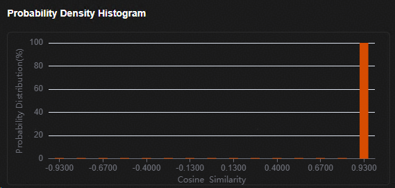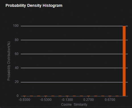 在“Probability Density Histogram”窗口查看验证样本余弦相似度的分布。