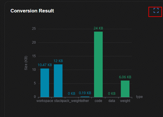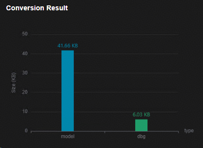 在“Convert results”窗口查看转化后模型的大小。