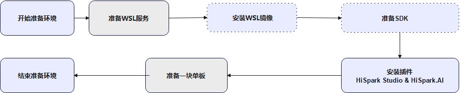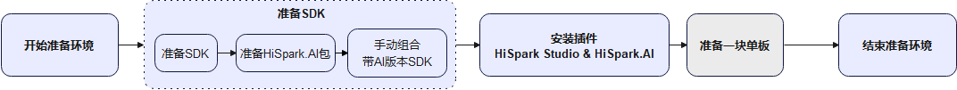 HiSpark Studio AI后端支持用户在Windows(推荐)和Linux环境中使用,环境准备步骤大致如图1、图2所示。若需要使用命令行工具进行模型的量化与转换,请参考《HiSpark AI转换工具 使用指南》 以及 《HiSpark.AI API 开发指南》,进行环境准备。