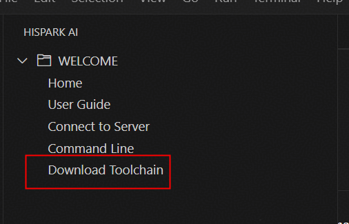 进入HiSpark Studio AI页面,单击“Download Toolchain”按钮。