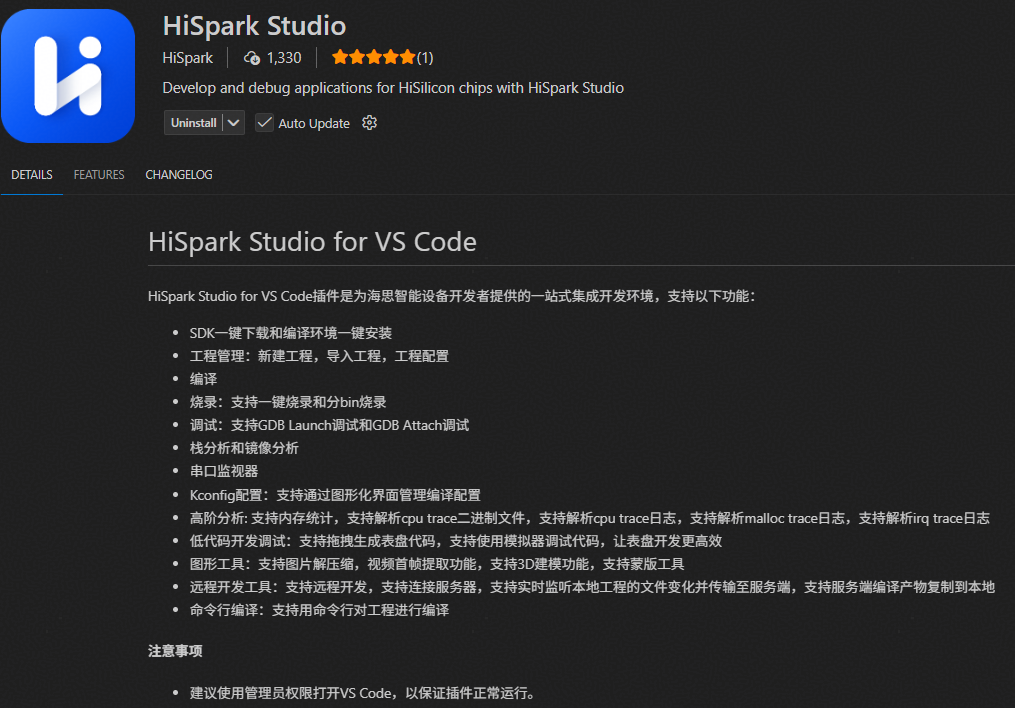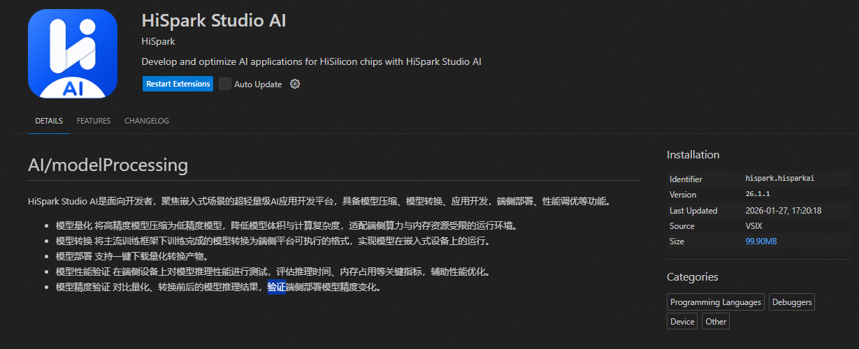 本文档主要描述HiSpark Studio AI for VS Code插件的安装及使用。该工具主要用于模型压缩、模型转换、应用开发,端侧部署、性能调优等。