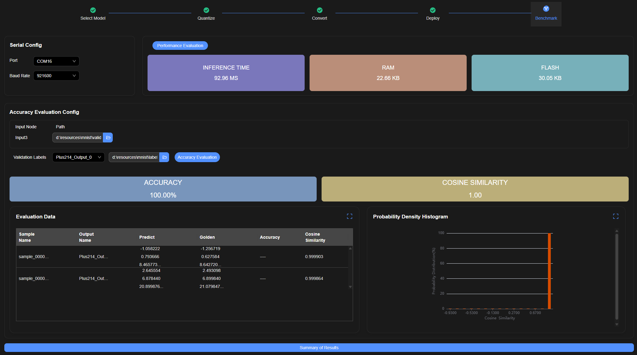 单击“Accuracy Evaluation”按钮,开始上板精度验证。