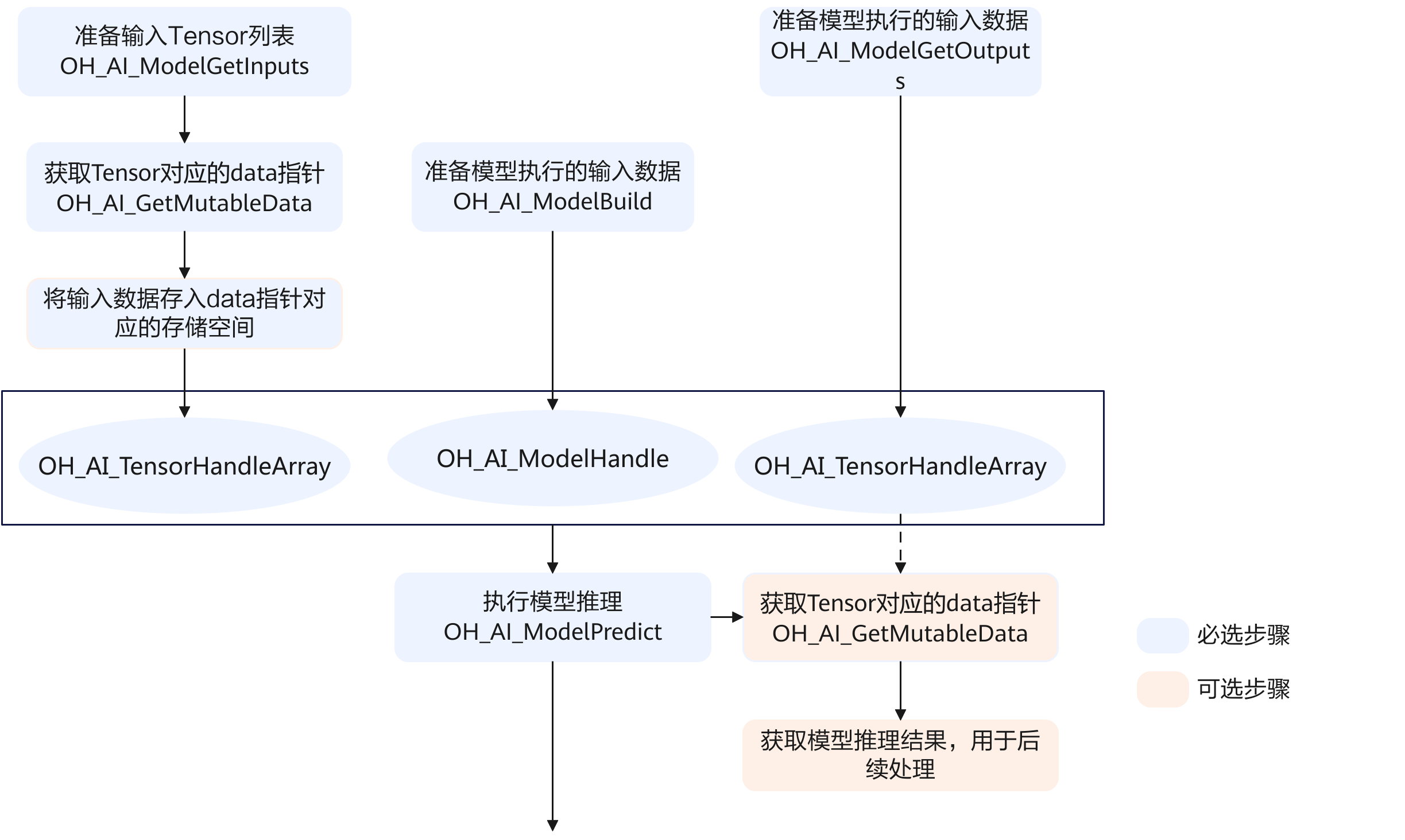 模型加载:模型推理前,需要先调用OH_AI_ModelBuild/OH_AI_ModelBuildFromFile/OH_AI_ModelBuildFromName接口将对应的模型加载到系统中。具体流程请参见“模型加载与执行”。