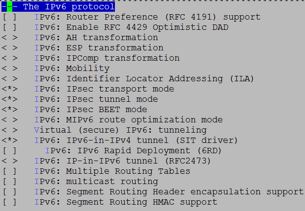 发布包中默认关闭IPv6功能。如果要支持IPv6,需要修改内核选项,并重新编译内核。具体操作如下: