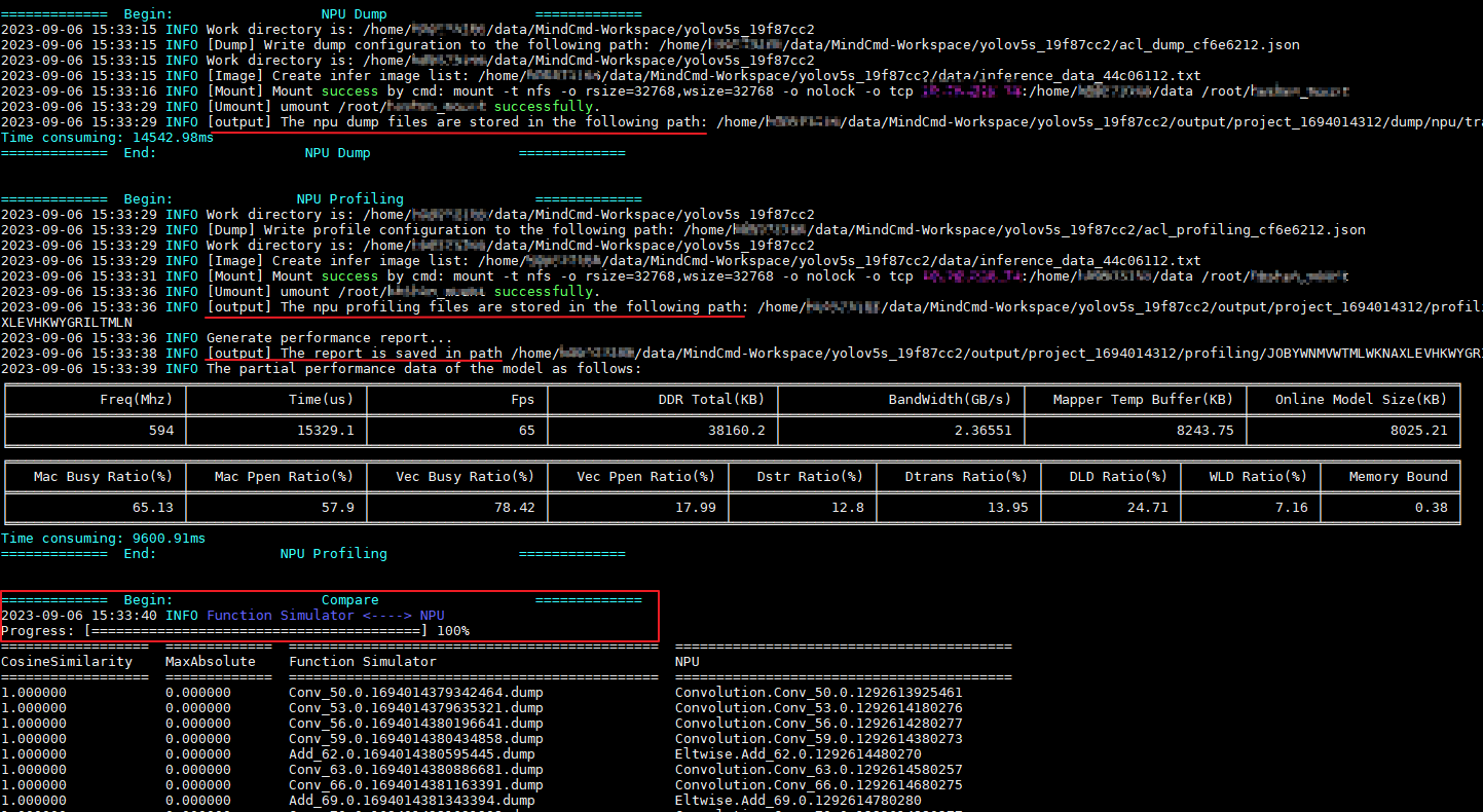 MindCmd:Python命令行工具,依赖CANN、AMCT(可选),支持网络模型端到端运行数据预处理、Ground Truth、AMCT、ATC、Simulate、板端推理、Dump、精度比对、性能分析,旨在提升网络模型移植、分析和优化的效率。