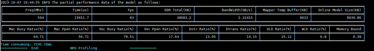 通过得到的Profiling数据,可以了解模型在推理过程中各层耗时及各层耗时占比、带宽、帧率等性能数据,如图4所示,根据获取的性能数据,我们能分析出是否存在关键性能瓶颈,辅助模型性能调优。