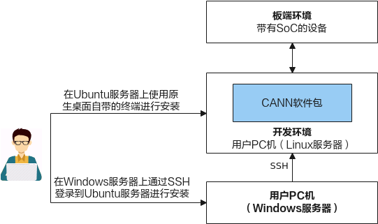 该场景下的开发环境需要单独部署CANN软件包,采用命令行的方式进行安装和使用。