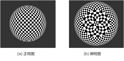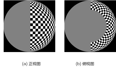 半球面方案较为简便,即在完全理想球面的基础上进行简单裁剪,水平方向上保留180°的棋盘格球面,垂直方向上也可根据镜头fov就行裁剪,如图2所示,该示意图中只保留南纬60°至北纬60°区域,裁剪高纬度区域。