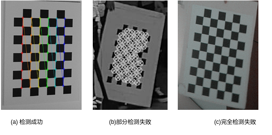 图c没有任何点线标志,表示该棋盘格角点检测失败,即该标定图是无效的。