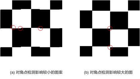 图b则仅有一部分的灰色点标志,表示该棋盘格角点检测失败,即该标定图是无效的;