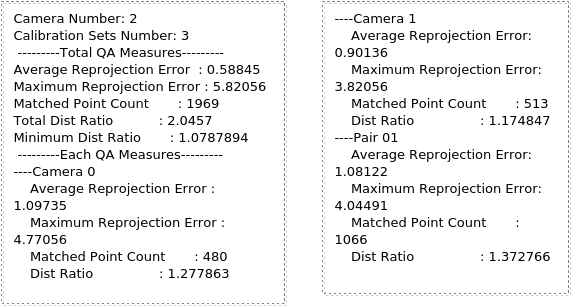 该文件在模型标定完成后生成,用于评估模型标定的效果。图1是双镜头标定生成的一个用例,QA_measures.txt主要分两部分,分别为Total QA Measures及Each QA Measures。