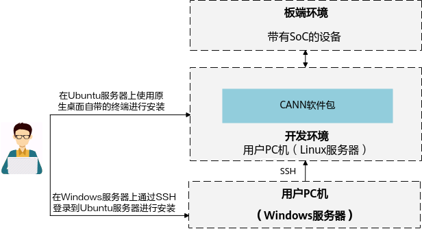 命令行方式开发环境:需要单独部署CANN软件包,采用命令行的方式进行安装和使用,具体方法请参见命令行方式开发环境安装。
