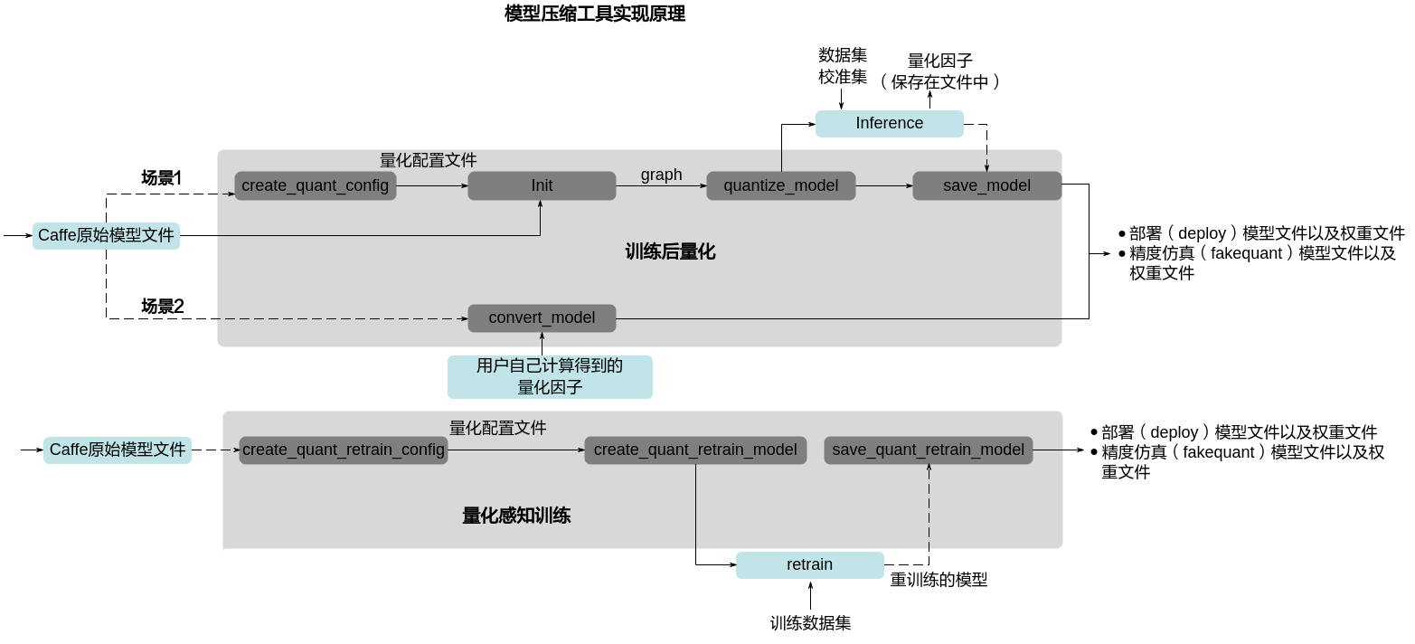 如果用户不使用 场景1中的接口,而是用自己计算得到的量化因子以及Caffe原始模型,生成量化后的部署模型和精度方案模型,则需要使用convert_model接口完成相关量化动作。该场景下的量化示例请参见convert_model接口量化示例。