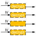 块密码学中,将需要加密/解密的消息块分成数块: ECB模式中,对每个块进行独立加密/解密,块与块之间没有依赖;非ECB模式中,块与块之间有依赖性,并且为了保证每条消息的唯一性,在第一个块中需要使用初始化向量IV。