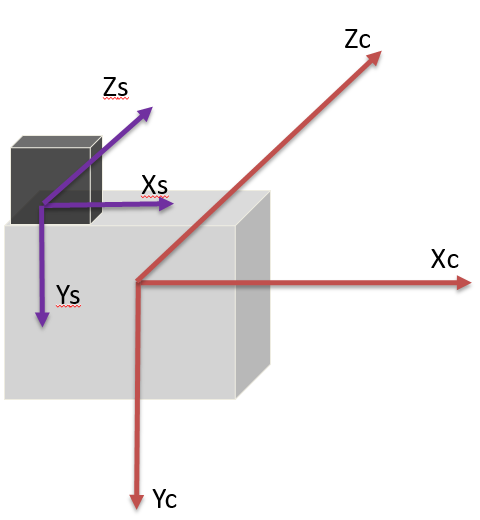 陀螺仪坐标系方向与图像坐标系方向通过旋转矩阵进行转换。假设陀螺仪数据为(Xg, Yg, Zg),算法使用的陀螺仪数据为(Xa, Ya, Za)。
