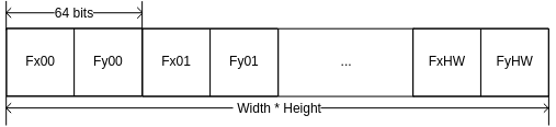 Fxu,Fyu表示输出图像坐标为u的像素点对应输入图像中的像素坐标。Fx,Fy用单精度浮点表示。RECT根据每个像素提供的Fx,Fy进行插值。
