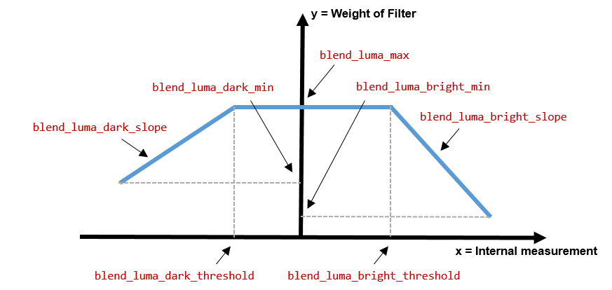 当场景出现剧烈变化,比如强光灯照射镜头后拿开,tmprflt_incr_coef和tmprflt_decr_coef 从0调到1,可能会出现一帧亮度跳变,不建议将滤波系数调为0。