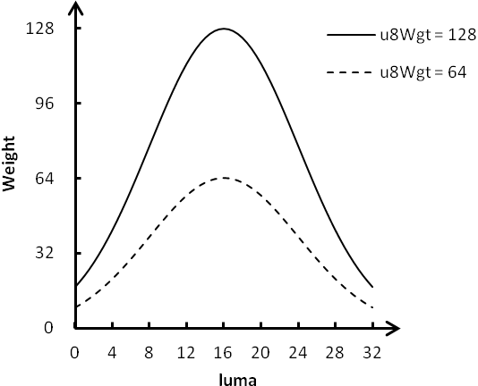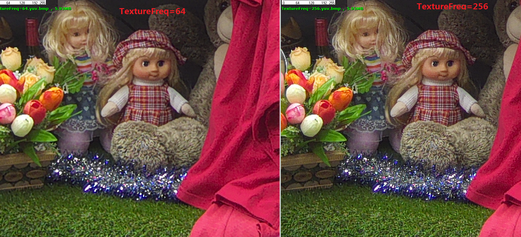 当tmprflt_incr_coef和tmprflt_decr_coef为128时,表示完全使用当前帧信息,不参考历史帧信息;同时,画面可能会出现概率性闪烁,不建议将该值设置到最大。