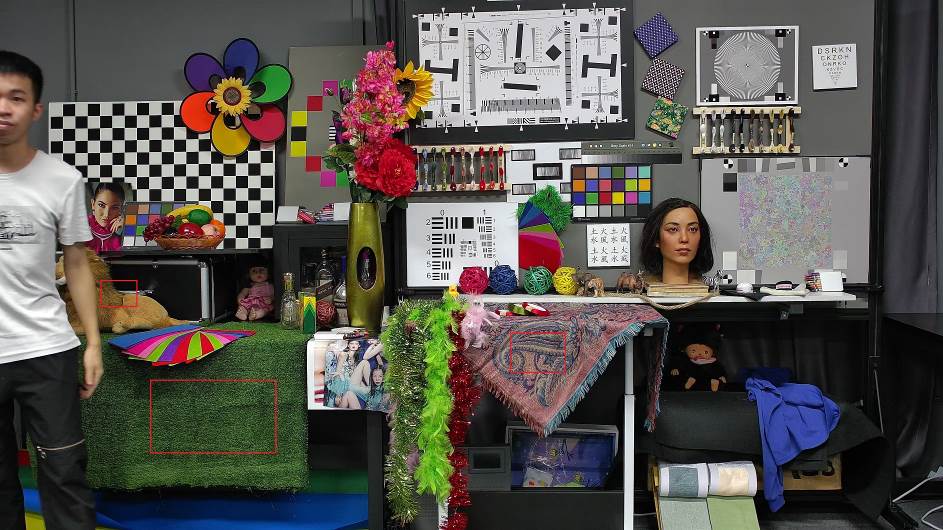 由于RGBIR sensor上少了一半的R和B分量(留给了IR分量),因此在高频区域的色彩混叠方面,RGBIR sensor的效果没有普通RGB sensor的效果好。同时由于RGBIR sensor的色彩信号的信噪比比普通RGB sensor的信噪比低,因此在调试RGBIR sensor时,去噪和sharpen模块需要重新适配。