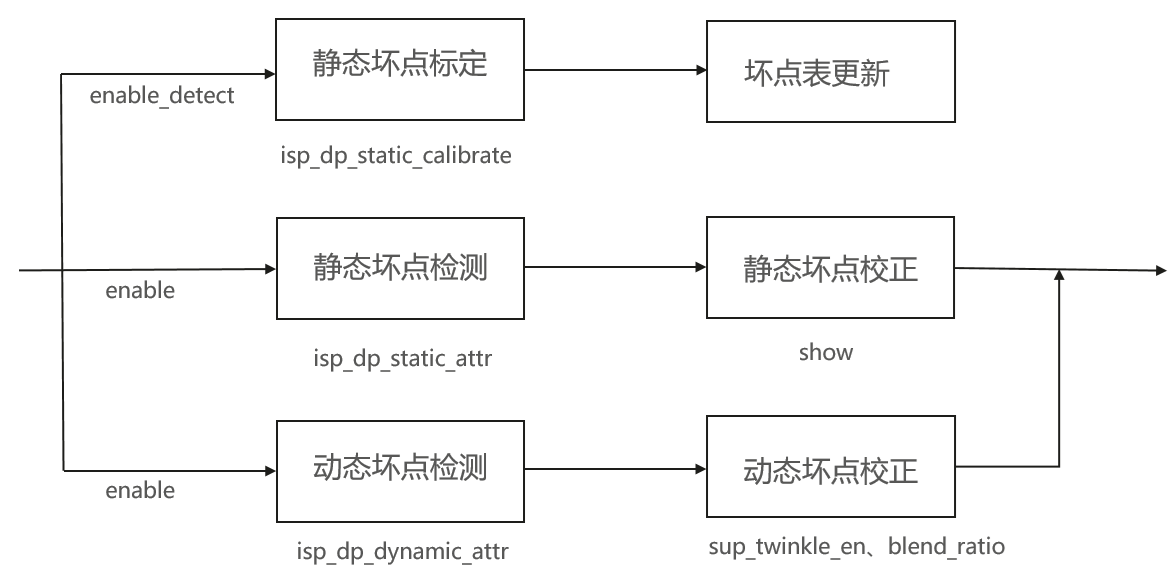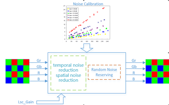 通过标定的黑帧或黑行对Sensor输入的图像进行校正,达到去除Sensor FPN的目的。 |