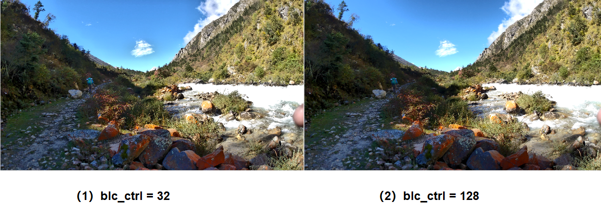 在过曝区域,通过调整exp_ctrl和esp_gain的值,使得过曝区域的亮度和颜色表现变得平滑。其中exp_ctrl[0]的值设定的越小,过曝区域的颜色差异会越小,exp_ctrl[1]的值设定越大,过曝区域和非过曝区域的差异化会越小。