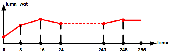 knee_point_coord的横坐标x需要根据sensor压缩曲线转换到[0,256]之间(8bit),例如sensor压缩输出的后有效数据位宽是12bit,则需要将sensor压缩曲线拐点的纵坐标右移4bit得到knee_point_coord的横坐标x;