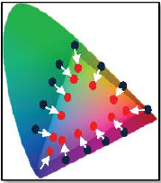 CLUT在CCM调试基本接近目标设备的基础上,针对CCM后仍有误差的颜色做补充调节。