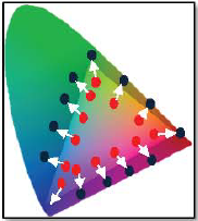 CCM的调节目标侧重于兼顾所有颜色,即让各种颜色的误差都相当,不偏向于某种颜色。