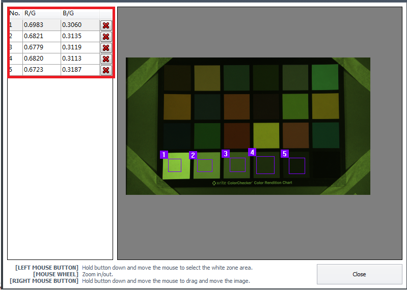 通过Color Check Free功能可以生成2-3组不同亮度下的色卡色块的RGB对。如图 使用含色卡的JPG图片所示。