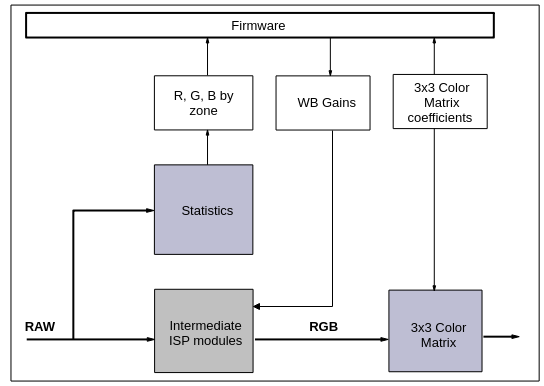 AWB模块由硬件WB信息统计模块及Firmware AWB策略控制算法两部分组成。