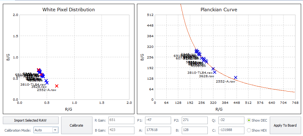 根据AWB统计模块提供的R、G、B三分量均值,计算G/R、G/B,得到AWB增益系数。FW算法会根据各个分块的统计信息,判断环境色温,计算最佳AWB系数。