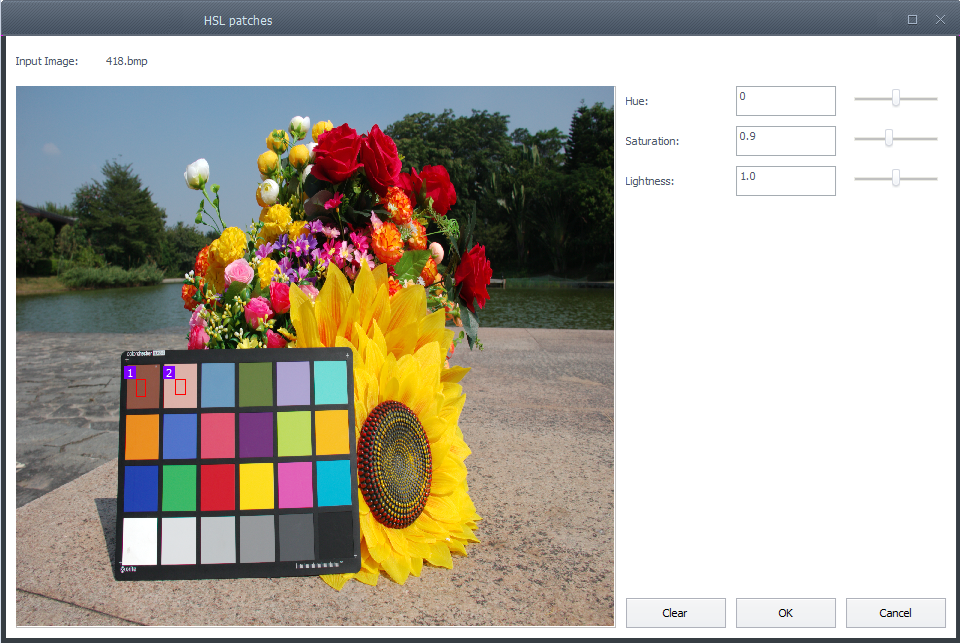 在没有目标设备的情况下,用源设备拍摄场景后,可以选择想调节的颜色表面,然后通过调整HSL参数来获得目标RGB值,指导CLUT表的生成。hue范围+-20,sat范围0.4-1.6倍,light范围0.6-1.4倍。