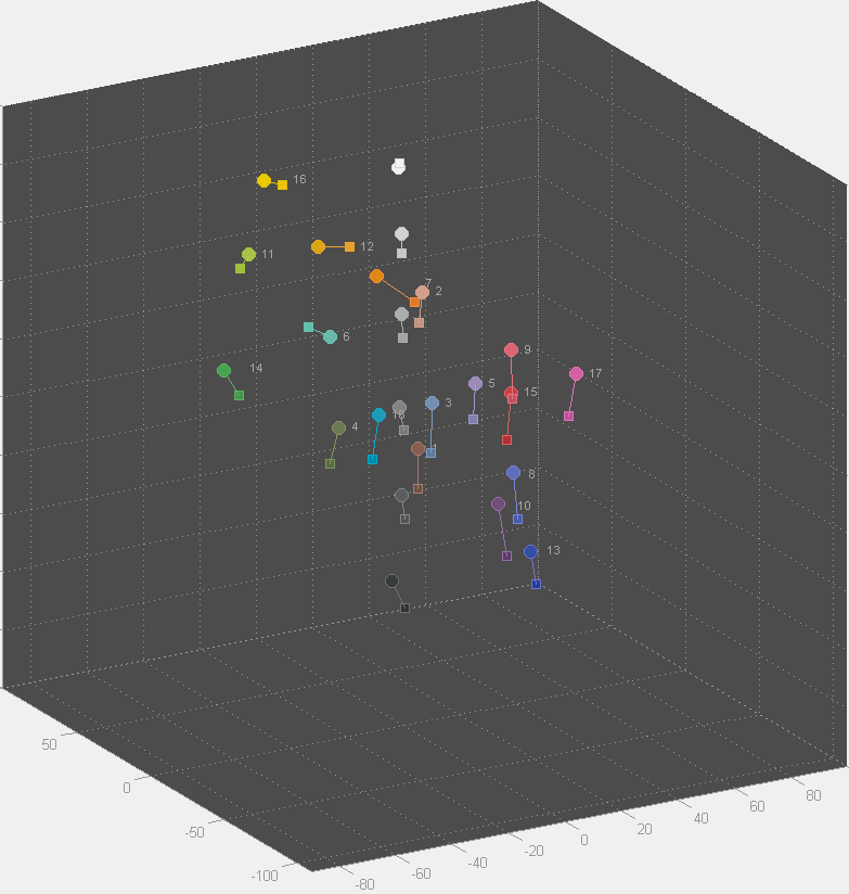 从二维图中可以看出CCM前数据饱和度低,亮度低。