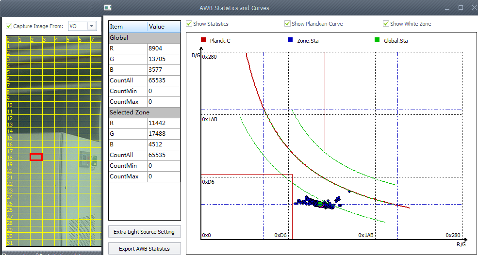 WB仅统计灰点的RGB三通道均值,准确地配置灰点条件,可提高FirmWare算法的准确度。