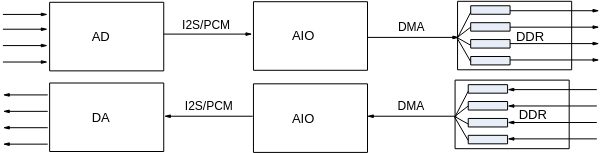 音频输入输出接口简称为AIO(Audio Input/Output)接口,用于和Audio Codec对接,完成声音的录制和播放。