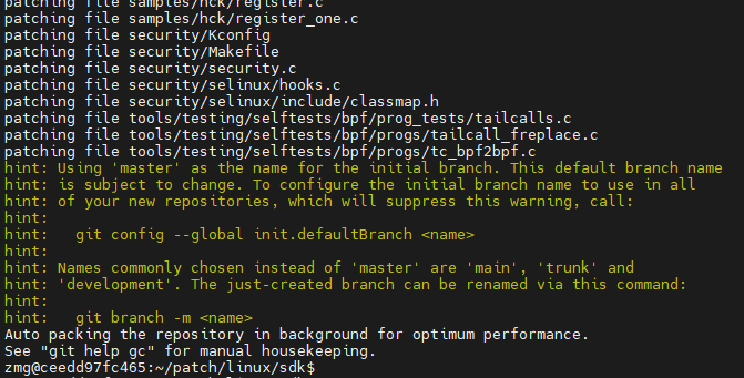 OH系统内核编译脚本在OpenHarmony/kernel/linux/build目录下, 编译前中会依次打入三个patch文件到内核源码: hdf.patch, oh_ss928.patch, oh_feature.patch。hdf.patch是OH代码中单独存放的hdf驱动相关的补丁,oh_ss928.patch就是第2章中制作的patch它主要包含了sdk的补丁,oh_feature.patch就是第3章中制作的patch它主要包含了OH系统特性的补丁。