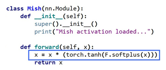 我们通过查询代码发现计算单元中的Softplus、Tanh和Mul是属于Mish激活函数的计算公式,如图8所示。而当前昇腾模式识别处理器SoC支持的激活函数只有:Relu、Leakyrelu、Prelu、Elu和Srelu。Mish函数不在支持范围内,因此造成模型转换后的Mish函数被分解成了多个计算单元。