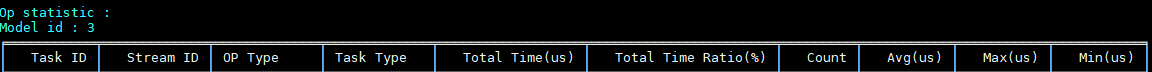 使用展示打屏功能请先安装 tabulate组件,可使用 pip3.7.5 install tabulate方式安装第三方依赖。执行命令后,命令行上会展示Profiling解析的数据,各数据展示属性分别如图1、图2、图3和图4所示。