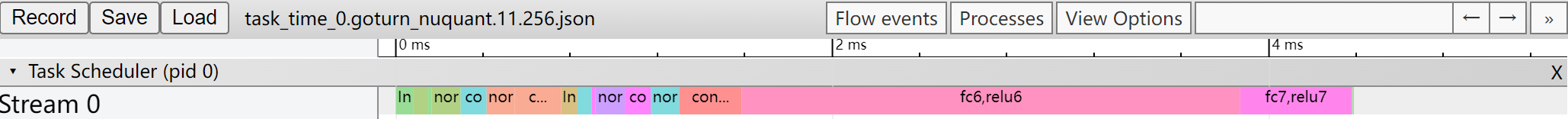从Task Scheduler任务调度信息数据中我们可以看到,时间线中执行了大量的Conv算子(时间线过长图片无法完全展示),且每个Conv算子的执行时间都比其他算子长。