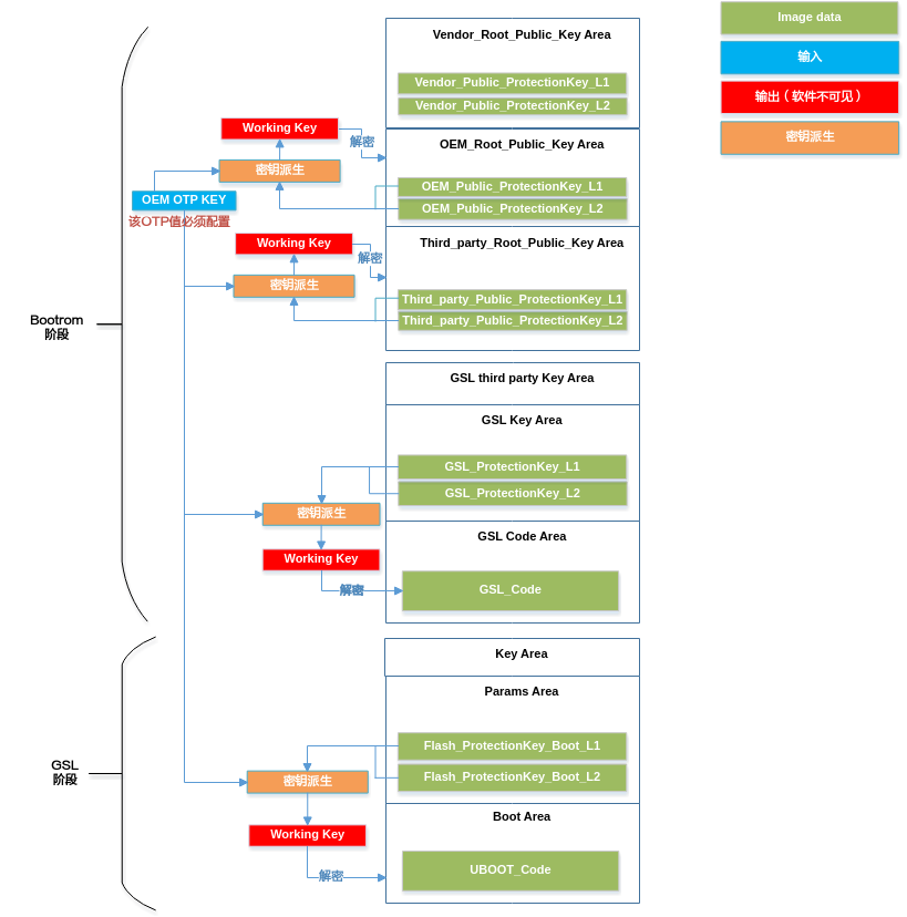 本文档主要是指导使用本安全启动方案的相关人员了解整个安全方案的流程,再通过一定的操作步骤和方法来使用本安全启动方案。主要介绍本安全启动的规格和特性,包括安全启动基本流程和key的层级结构与验签逻辑,及其整个安全启动方案的使用。