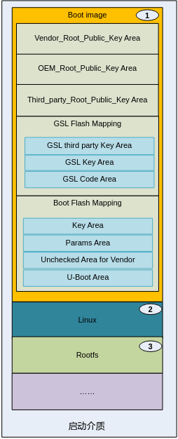 安全启动镜像在启动介质上主要分为3大块: