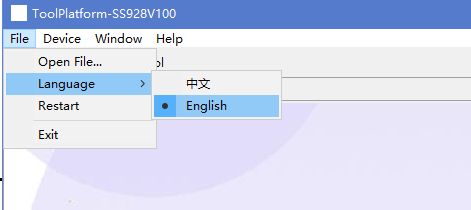 在工具平台菜单中【Device】>【Current Device】中,显示当前为SS928V100,如图1所示。